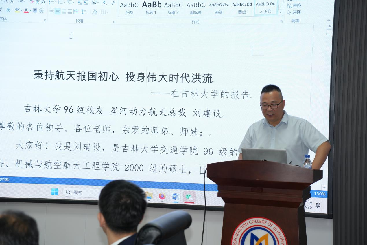 仪式结束后,刘建设校友为太阳集团tcy8722本科及研究生代表做了《秉持航天报国初心,投身伟大时代洪流》励志报告,分享了学习、工作以及创建星河动力的历程,鼓励同学们心怀“国之大者”,既要夯实学业基础,又要以'钉钉子精神'提升自身能力,用青春汗水浇筑科技创新高原的基石,用专业所学支撑交通强国与航天强国建设的巍峨大厦!