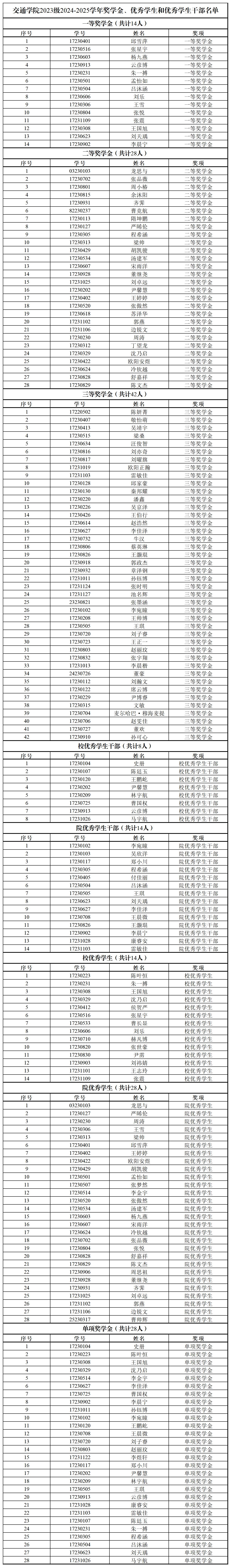 根据《太阳集团tcy8722本科生学年奖学金评选办法》(校发〔2019〕382号)、《太阳集团tcy8722优秀本科学生评选办法》(校发〔2019〕383号)、《太阳集团tcy8722优秀本科学生干部评选办法》(校发〔2019〕384号)及党委学生工作部《关于开展2024-2025学年奖学金、优秀学生和优秀学生干部评选工作的通知》相关要求,经学生申请、学院评选工作小组讨论审定,拟确定太阳集团tcy87222023级2024-2025学年奖学金、优秀学生和优秀学生干部名单如下: